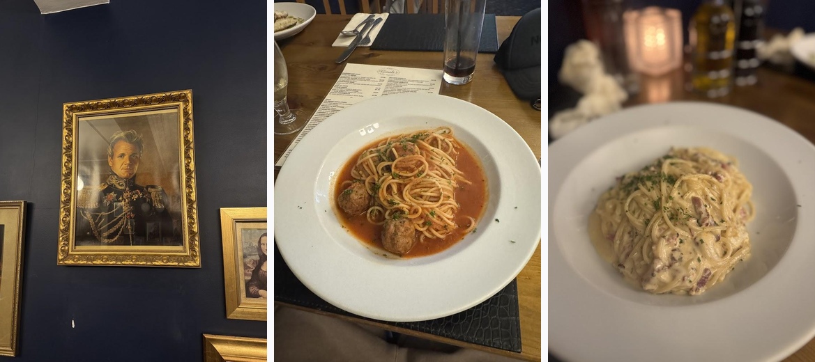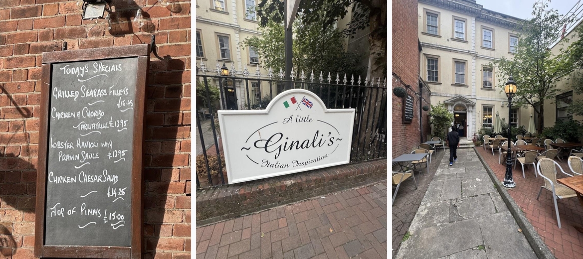 Can’t fault Ginalis at all. The service was amazing, really and genuinely attentive, food was tasty and all came out fresh and piping hot and very good prices and portion sizes. Had the cheesy garlic bread and king prawn on ciabatta for starters. Carbonara for my son, pizza for the little one which was amazing value for a kids meal, I had meatballs and wife had the sea bass. All was great, flavourful. Desserts were top as well, soooo good. 🤤 best Italian I have been to. I highly recommend if in the Poole/Bournemouth area and looking for great Italian restaurant 👍🏽😊😍🇮🇹🍝